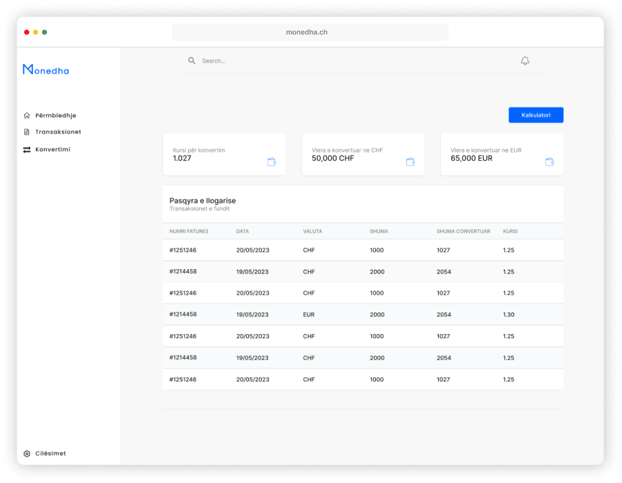 Transferoni para nga llogaria juaj bankare në të gjitha monedhat dhe pranoni konvertimin direkt në llogarinë tuaj, duke përcjellur historikun e transaksioneve.
